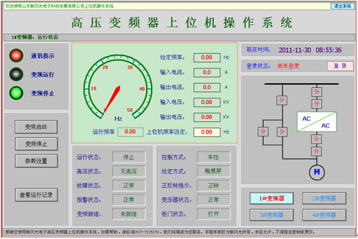 變頻器有三種控制方式,1、本地控制:直接利用變頻調(diào)速系統(tǒng)柜門主界面進行變頻器所有功能的控制;2、遠程控制:利用外控DCS遠程控制信號,對變頻器啟動、停機、調(diào)速的控制;3、上位控制(非標配,可選):利用提供的上位機軟件,與變頻器進行Modbus RTU通訊,(需要其他配置,進行轉(zhuǎn)換)實現(xiàn)對變頻器所有功能的控制。