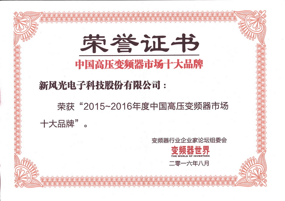 2015-2016 高壓變頻器獲獎(jiǎng)