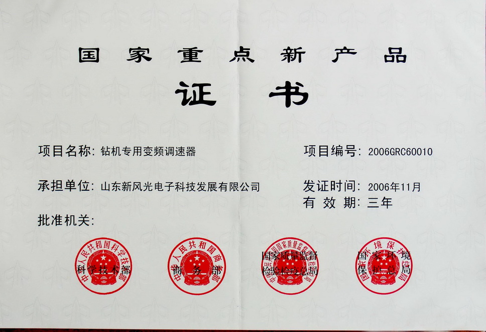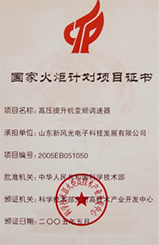 高壓提升機(jī)變頻器國(guó)家火炬計(jì)劃證書
