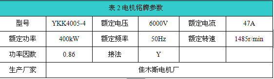 井口兩臺電機(jī)銘牌中主要參數(shù)如表2所示。