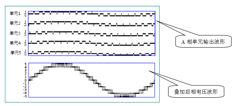 6KV每相5個(gè)單元級(jí)聯(lián)多電平變頻器電壓疊加原理(以其中一相如A相為例)如下圖所示: