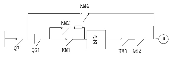 變頻器配備了自動(dòng)旁路柜,通過(guò)KM3、KM4的控制,可自動(dòng)(或手動(dòng))在變頻狀態(tài)和工頻狀態(tài)之間切換。變頻狀態(tài)下, KM3閉合,KM4斷開(kāi),變頻器控制電機(jī);工頻狀態(tài)下,KM3斷開(kāi),KM4閉合,在切換至工頻帶動(dòng)電機(jī)。變頻器可以在重故障時(shí)自動(dòng)切換工頻運(yùn)行,這樣既保證了變頻器正常運(yùn)行,又避免了直接啟動(dòng)電機(jī)大電流對(duì)電網(wǎng)的沖擊。