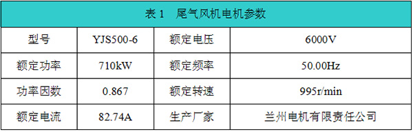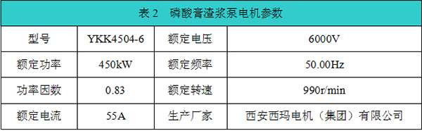 現(xiàn)場設(shè)備尾氣風機的電機參數(shù)如下表1所示,二臺450kW/6kV的磷酸膏渣漿泵的參數(shù)相同,其中P0209A泵的電機參數(shù)如下表2所示。