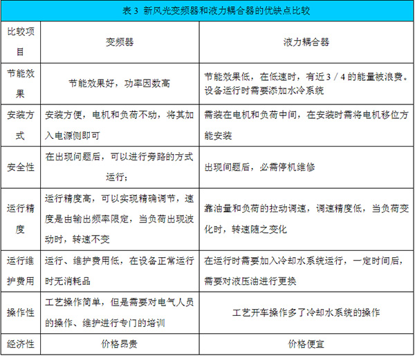 3新風光變頻器和液力耦合器的優(yōu)缺點比較