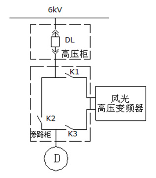 (3) 變頻改造設(shè)備與原工頻動力系統(tǒng)為并聯(lián)互鎖連接關(guān)系。