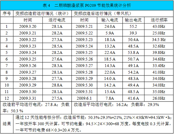 7.1 二期磷酸渣漿泵P0209節(jié)能效果統(tǒng)計分析