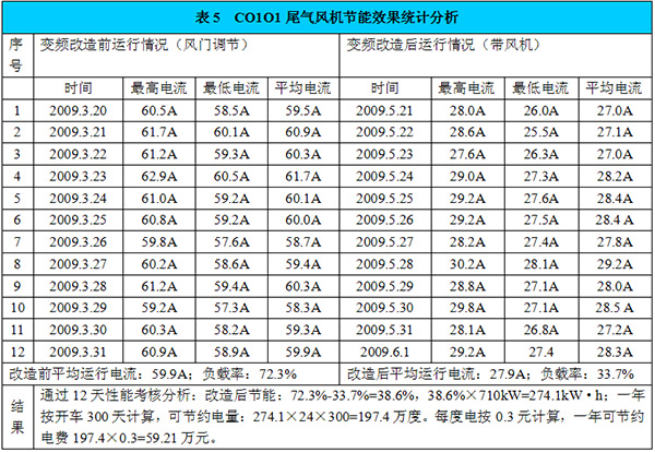 7.2 CO1O1尾氣風機節(jié)能效果統(tǒng)計分析