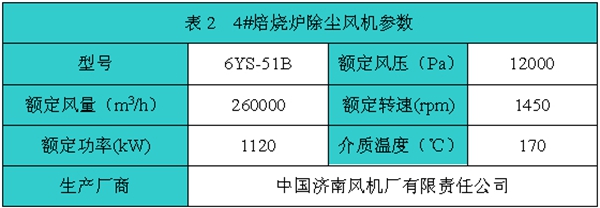 現(xiàn)場(chǎng)2#、4#焙燒爐除塵ID風(fēng)機(jī)型號(hào)相同,以4#焙燒爐除塵ID風(fēng)機(jī)為例介紹其參數(shù)。