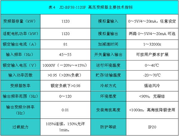 3.2 JD-BP38-1120F高壓變頻器技術(shù)性能