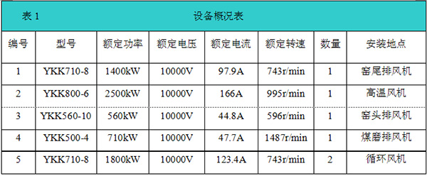 在風(fēng)機改造過程中,高溫風(fēng)機(2500kW/10kV、1套)采用“一拖一”控制加自動旁路柜,窯頭排風(fēng)機(560kW/10kV、1套)、窯尾排風(fēng)機(1400kW/10kV、1套)、煤磨排風(fēng)機(710kW/10kV、1套和循環(huán)風(fēng)機(1800kW/10kV、2套)采用“一拖一”控制加手動旁路柜。