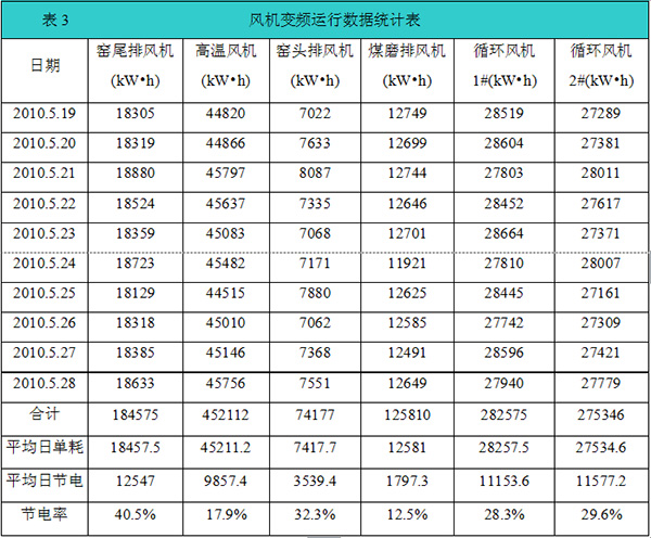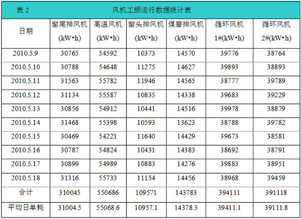 7.3水泥生產(chǎn)風(fēng)機變頻運行數(shù)據(jù)統(tǒng)計表