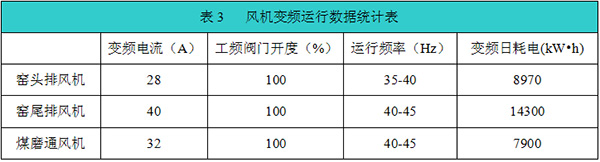改造后,水泥生產(chǎn)線變頻耗電情況統(tǒng)計(jì)數(shù)據(jù)如表3所示。