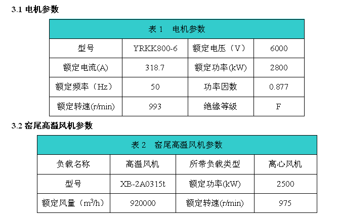 3現(xiàn)場窯尾高溫風機及電機參數(shù)