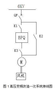 改造前:原系統(tǒng)6kV高壓開關(guān)柜至電機(jī),電機(jī)與風(fēng)機(jī)直接連接,通過風(fēng)門擋板的開度來調(diào)節(jié)流量。