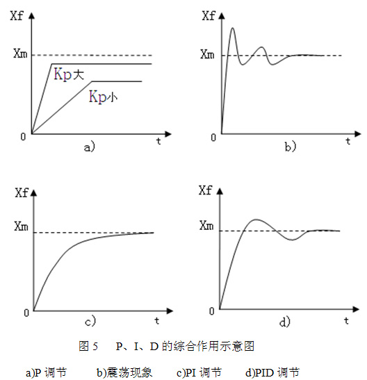 就是說,盡管Kp(Xm-Xf)一下子增大(或減?。┖芏啵玐a只能在“積分時間”內(nèi)逐漸的增大或減小,從而減緩了Xa的變化速度,防止了振蕩。積分時間越長,Xa的變化越緩慢。只要偏差不消除,Xm-Xf≠0,積分就不停止,從而有效的消除靜差。如圖5(c)所示。