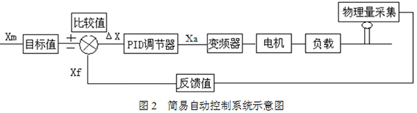 如圖2所示是一個最基本的自動控制系統(tǒng)圖,在這里我們假設(shè)目標(biāo)值為Xm,反饋值為Xf,其差值為ΔX,則有: