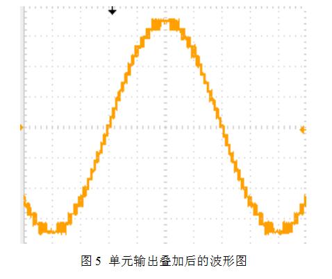 單元鏈接后三相之間進(jìn)行星型連接并通過電抗接入電網(wǎng),通過對每個單元的PWM波形的疊加,可得到逼近正弦的階梯PWM波形,如圖5所示為星型連接的單相波形。