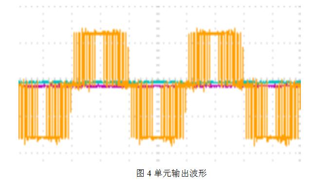 功率單元結(jié)構(gòu)上完全一致,模塊化的結(jié)構(gòu)設(shè)計,使得功率單元可以任意互換,單元的外部接口只有兩個或四個輸出端子及兩個光纖插口,這使得維護(hù)和檢修更簡單。每個單元通過IGBT逆變橋?qū)崿F(xiàn)正弦PWM控制,可得到如圖4所示的單元輸出波形。