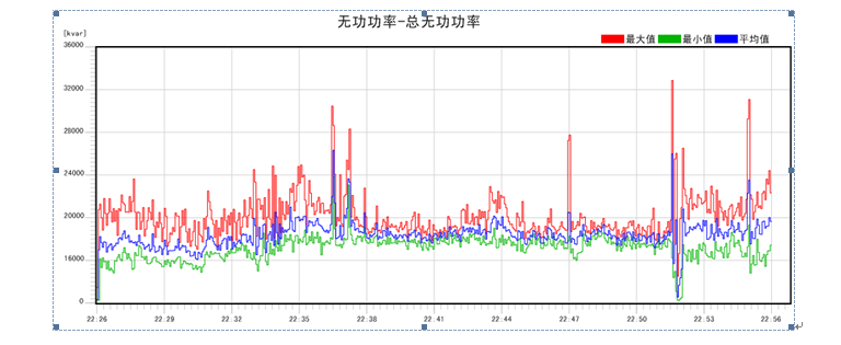 根據(jù)現(xiàn)場電能質(zhì)量情況和用戶需求,合理的設(shè)計補償容量。測試數(shù)據(jù)表明電弧爐最大無功沖擊可以達到電弧爐變壓器的容量2倍以上,如圖2所示。