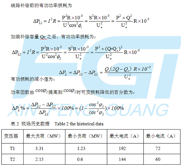 采用固定電容器的無功補(bǔ)償方式后,從現(xiàn)場實際運行的情況來看,電網(wǎng)在重負(fù)荷時存在“欠補(bǔ)”現(xiàn)象,在低負(fù)荷時存在著一些無功倒送,即“過補(bǔ)”現(xiàn)象,這樣不僅會使變壓器二次側(cè)電壓升高,而且還會使容性無功功率在輸電線路上傳輸,增加電能損耗。