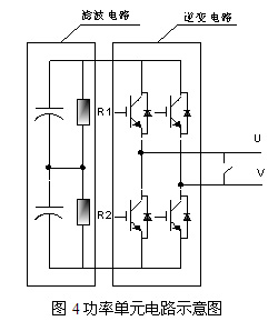 功率單元電路如圖4所示。為保證功率單元的可靠性,設(shè)計時選用同一批次的元器件,保證各元器件性能的一致性。每個功率單元均具有完善的保護措施,并且各工作狀態(tài)均送回主控單元,主控與各單元信號連接均采用光纖。