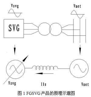FGSVG產(chǎn)品的原理示意圖如圖1所示,基本原理就是將自換相橋式電路通過變壓器或者電抗器并聯(lián)在電網(wǎng)上,適當(dāng)?shù)卣{(diào)節(jié)橋式電路交流側(cè)輸出電壓的幅值和相位,或者直接控制其交流側(cè)電流就可以使該電路吸收或者發(fā)出滿足要求的無功電流,實現(xiàn)動態(tài)無功補償?shù)哪康摹?/p>