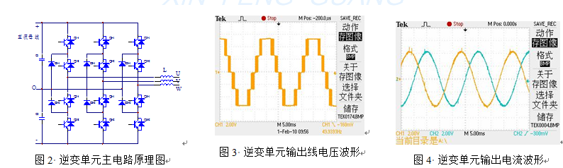 裝置為得到大功率輸出可采用多個逆變單元并聯(lián),每個單元獨立控制,具有冗余工作的特點,即使單元出現(xiàn)保護,其余逆變單元可以正常工作,進一步提高裝置運行的可靠性。而且每個逆變單元結(jié)構(gòu)上完全一致,可以互換,這使得調(diào)試、維修非常方便。