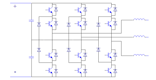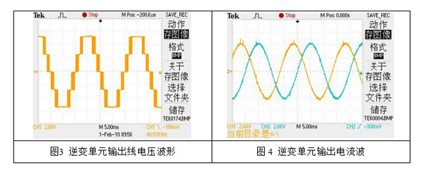 逆變裝置的單元采用三電平拓撲電路,如圖2所示。逆變輸出電壓波形、輸出電流波形分別如圖3、4所示。